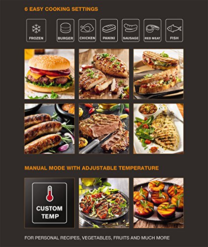 Cook like a master chef with 5 levels of automatic cooking: Rare, Medium Rare, Medium, Medium Well & Well Done. This grill has an automatic sensor to know how thick your food is and how long to cook it to get it perfect