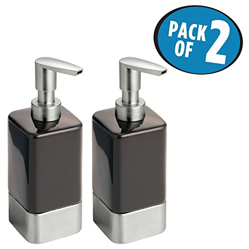 mDesign Liquid Hand Soap Ceramic Dispenser Pump Bottle for Kitchen, Bathroom | Also Can be Used for Hand Lotion & Essential Oils - Pack of 2, Cocoa/Nickel