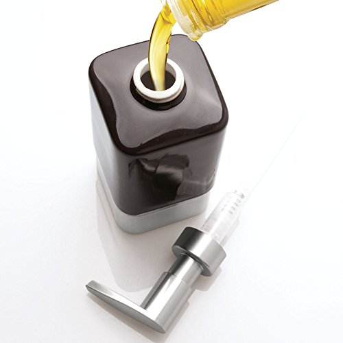 DURABLE AND REUSEABLE: Made of cocoa colored ceramic with rust resistant brushed nickel finished plastic pump heads