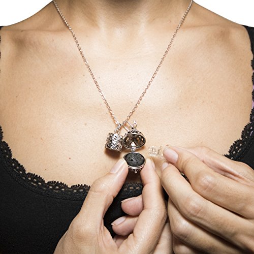 Designed with you in mind, your ViLu Essentials aromatherapy necklace brings you the best portable essential oil diffusion in a charming 2-piece aromatherapy necklace set. Easily swap in and out between the locket, the bottle, or, for beauty combined with functionality, wear them both together.