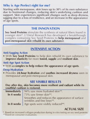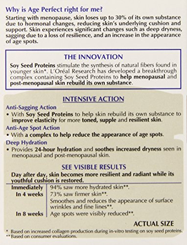 Age Perfect Night Cream is formulated to help address top mature skin concerns while you sleep. Increased dryness can be soothed with long-lasting, nourishing moisture overnight. This overnight face cream for mature skin can work at night while you sleep. Age spots can appear visibly reduced and skin’s elasticity improved. Formulated with Innovative Soy Seed Proteins, this cream can help skin appear more toned, supple and resilient. Start everyday with the look and feel of resilient, radiant skin with Age Perfect Night Cream for mature skin. Packaging may vary. What you receive may not be what is reflected on site. • Helps improve skin elasticity • Helps encourage more toned, supple, and resilient skin • Helps provide 24HR hydration to mature skin • Formulated with Soy Seed Proteins Provides 24HR hydration and soothes increased dryness. Every night, smooth Age Perfect Night Cream gently over the face and neck until thoroughly absorbed. For best results use with Age Perfect Cream Cleanser and Age Perfect Day Cream SPF 15 for daytime.Feature