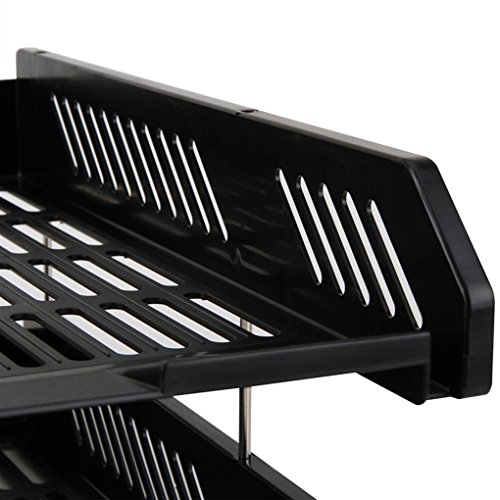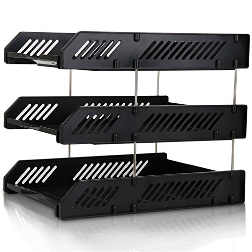 SAYEEC Sturdy 3 Tier Foolscap Desktop File Letter Trays Plastic Holders & 8 Metal Riser Rods / File Dividers Document Rack Display and Storage Organiser Black