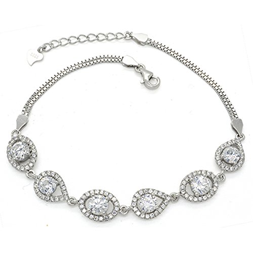-. Feature : Plating: Rhodium / Base: .925 Sterling Silver / White CZ Evil Eye Link Bracelet / Chain Length: 7.5+1" Extender / Imported