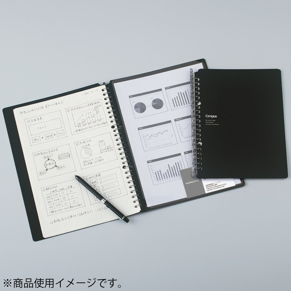 ■ ■ Slim loose-leaf binder that can cover documents and business cards by folding back the cover ■ ■