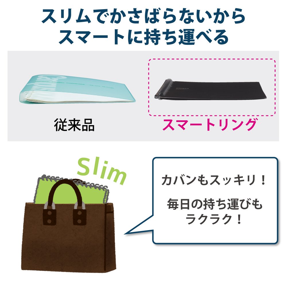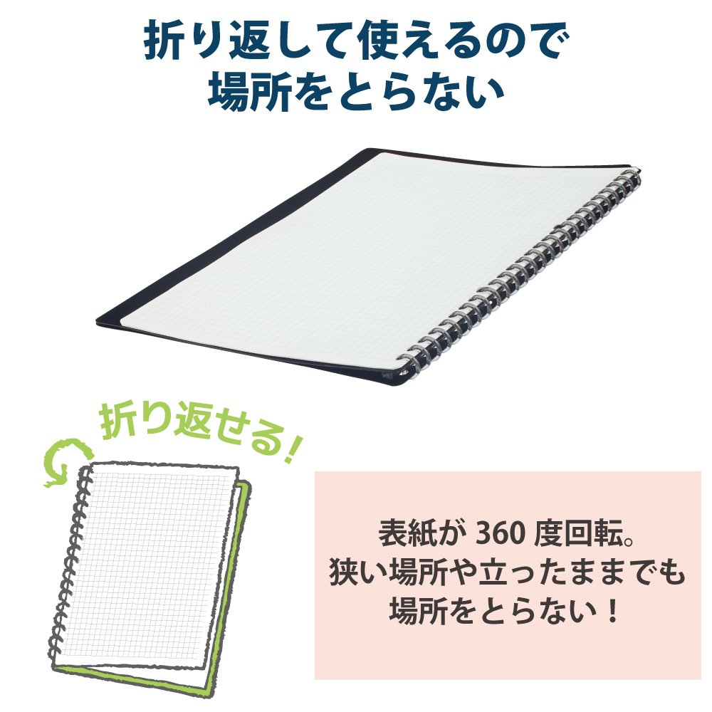 By adopting "smart ring" binding tool, you can fold back the cover, making it easier to write even in a narrow place or standing.