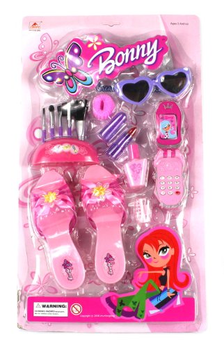 - Feature : Butterfly Bonny Pretend Play Toy Fashion Beauty Set / Comes w/ Pair of Shoes! Measure Approx. 7.5" Long / Assorted Hair and Beauty Accessories include Cell Phone, Make Up Brushes, Sunglasses, Scrunchie, Hair Clips, etc! / Pretend Play, Hours of Fun! Accessories May Vary / Perfect for your Little Princess!