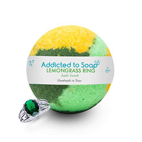 Addicted to Soap – Lemograss Ring Bath Bomb | Ultra Luxurious – Extra Large 6oz Bath Bomb with STERLING SILVER RING Surprise Inside - Organic & Sensual Relaxation Handmade with Love in Texas