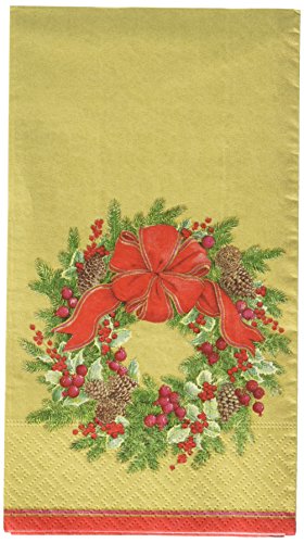 Entertaining with Caspari 13411G Evergreen Wreath Gold Paper Guest Towels, Pack of 15, Multicolored