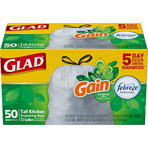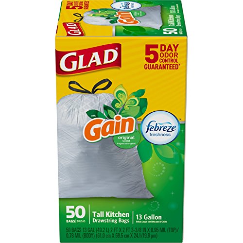 Glad OdorShield Tall Kitchen Drawstring Trash Bags - Gain Original with Febreze Freshness - 13 Gallon - 50 Count