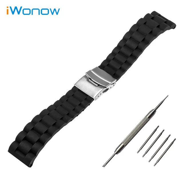 실리콘 고무 시계 밴드 18 미리메터 20 미리메터 22 미리메터 24 미리메터 MK 스테인레스 스틸 안전 버클 스트랩 손목 벨트 팔찌 블랙 + 도구
