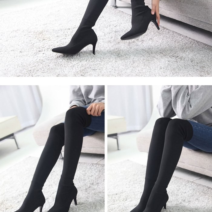 商品名:ロングブーツ レディース ピンヒール ポインテッドトゥ スエード調 2017 秋冬 ファッション 靴 婦人靴