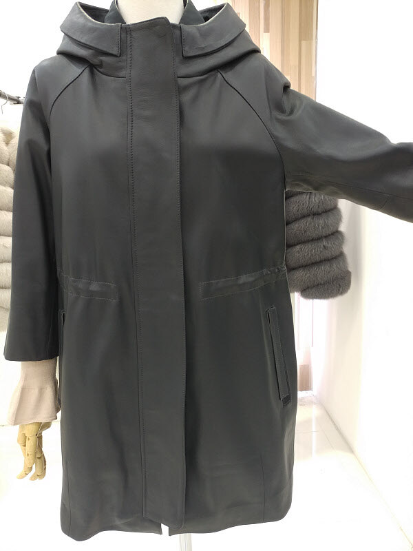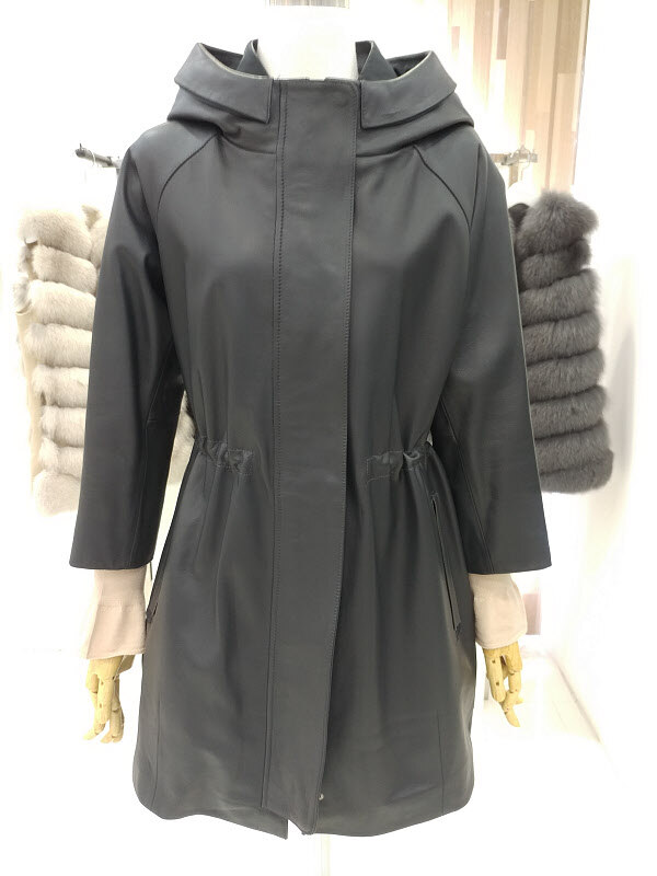 고급스러운 그레이컬러의 세련미와 가벼우면서도 미니후드의 트리밍이 퀄리티 높게 다가오며
