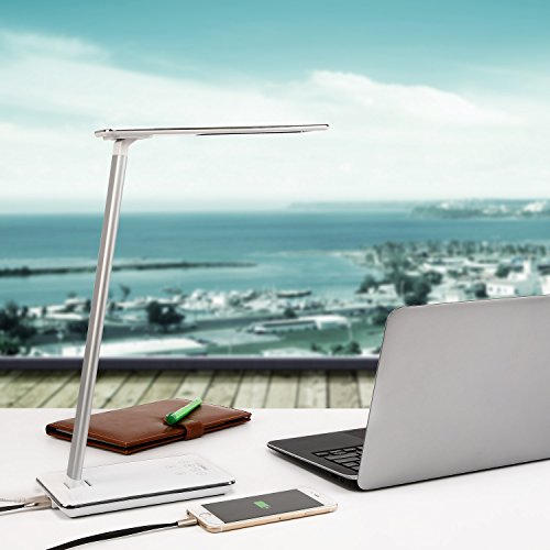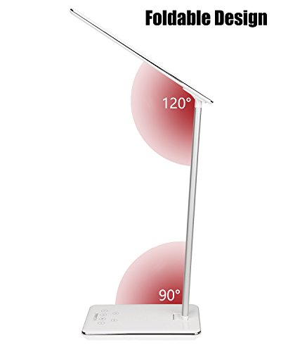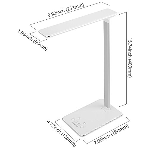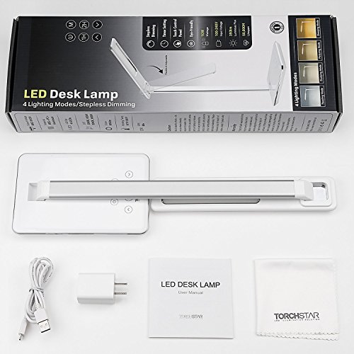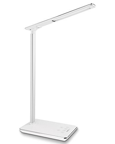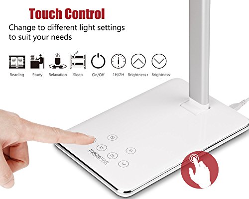 Dimmable LED Desk Lamp, 4 Lighting Modes (Reading/Studying/Relaxation/Bedtime), Fully Adjustable Brightness, Touch Sensitive Control, USB Charging Port, 1 & 2 Hour Auto Timer, Piano White Finish