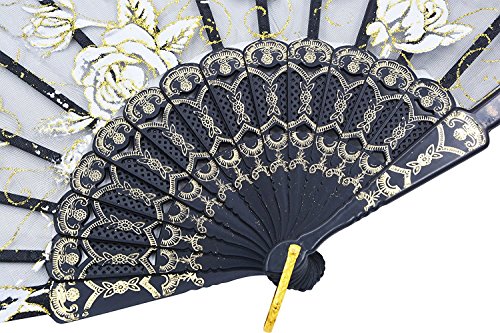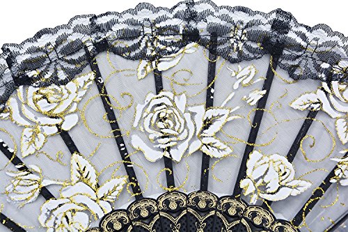 GZZOU 9"(23cm) Lace Rose Hollow Out Lace Fan Folding Hand Fans Praise Spring Dance Fan Rose Lace Fan Gift Decorative Fancraft Folding Fan Wedding Fan 10PCS (Multicolor)