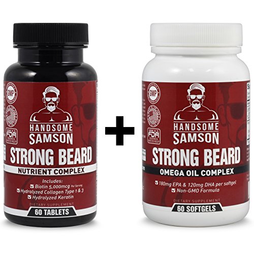 Beard Grower Vitamins & Omega-3 Beard Growth Product to Grow Thicker Beard Faster | A best facial hair grower, beard vitamin - for Beard Starter,...