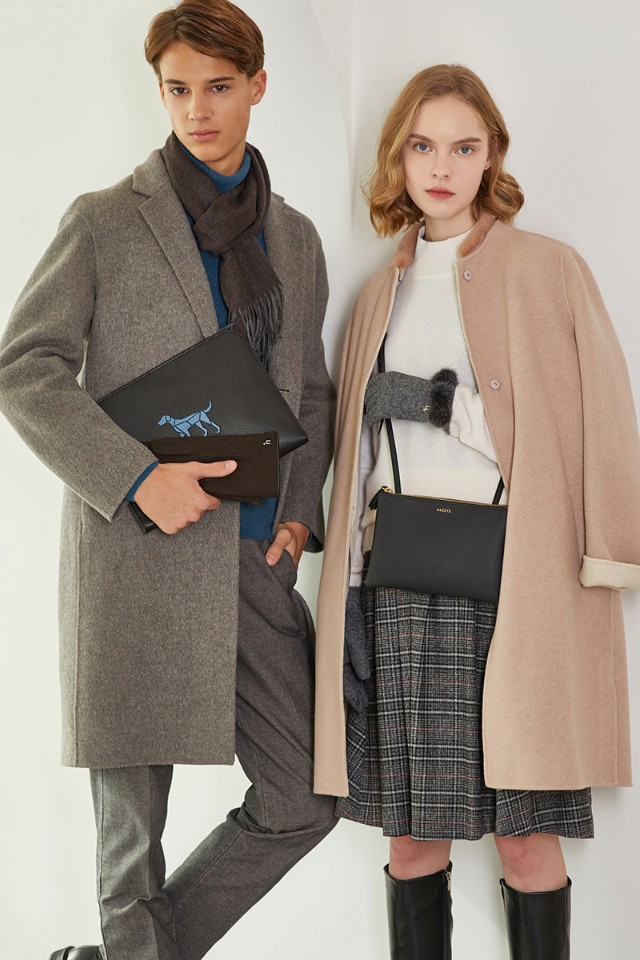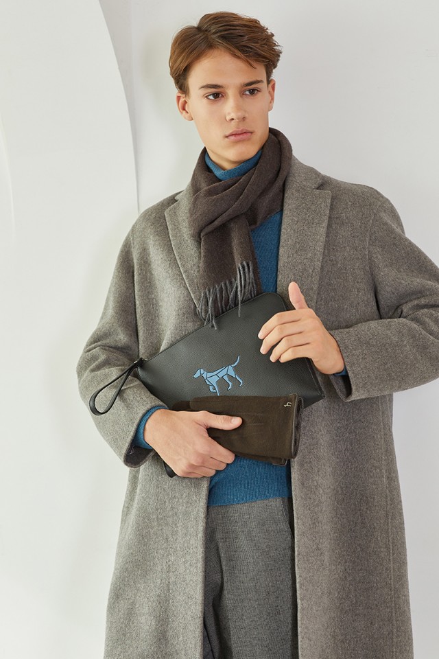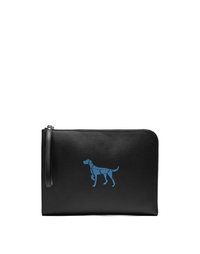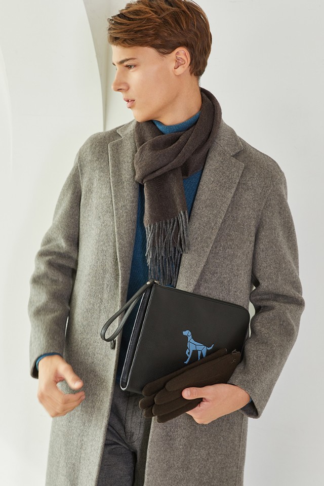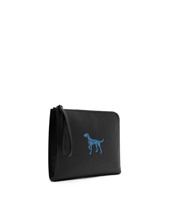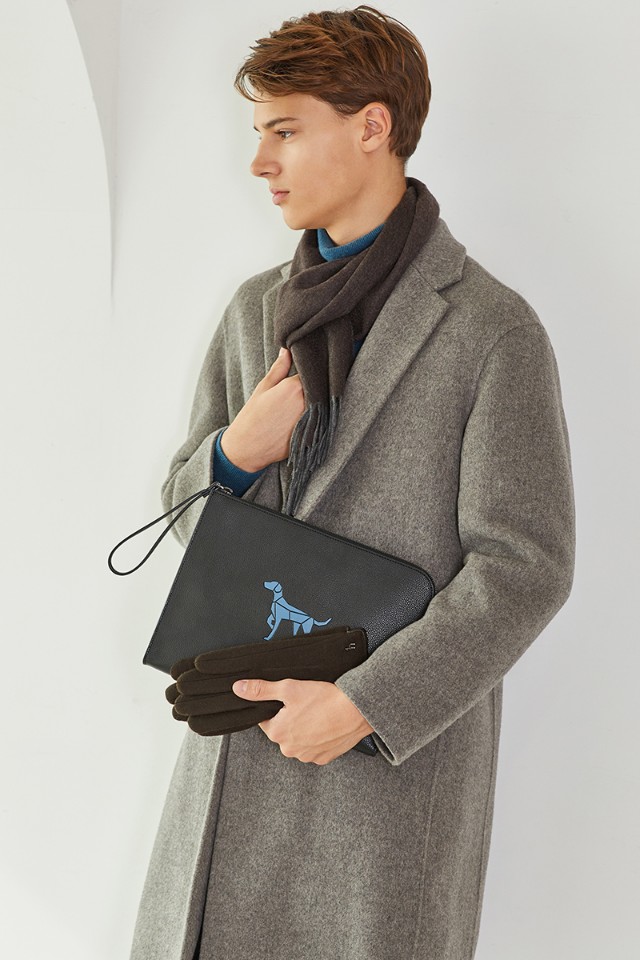 베이직한 블랙 가죽 디자인에 실버 로고와 배색 퍼피 심볼로 포인트를 준 클러치백 입니다.