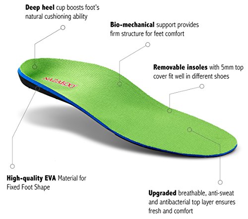 Orthotic Insoles for Flat Feet by NAZAROO, Shoe Inserts for Plantar Fasciitis, Foot Pain, Heel Pain and Pronation Relief for Mens or Womens Shoes/Boots, Green