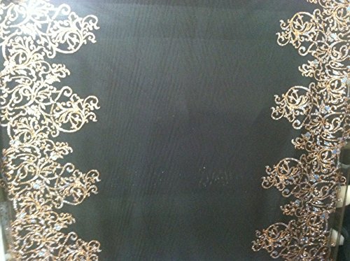 Brown Tulle Fabric with Copper & Blue Glitter Sparkle 2 Border Design ~ 2 Yds~58 "