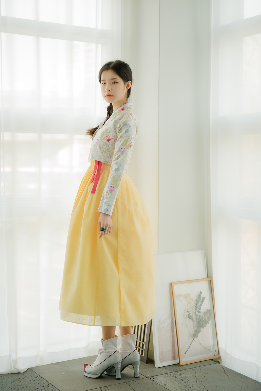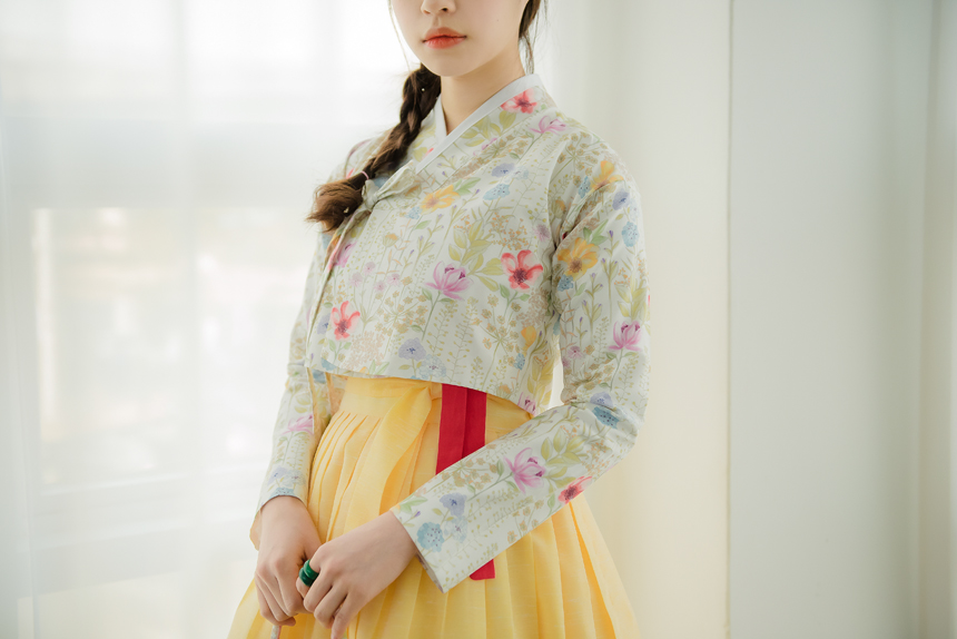 이번시즌 꽃닮의 저고리는 전통적인 한복 고유의 디자인 방식인 평면재단법으로 지어졌습니다.