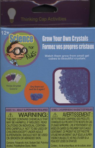 -. Binding : Toy -. EAN : 0081175367754 -. Feature : Grow your own crystals, use over and over / Three colors of crystals / Dry them out and do it all over again! / Watch small gel cubes grow into beautiful crystals! / Grows in minutes -. IsAdultProduct : 0 -. Label : Thinking Cap Activities -. Manufacturer : Thinking Cap Activities -. ProductGroup : Toy -. ProductTypeName : TOYS_AND_GAMES -. Publisher : Thinking Cap Activities -. Studio : Thinking Cap Activities -. Title : Grow Your Own Crystals Science for Kids Thinking Cap Activities -. UPC : 081175367754