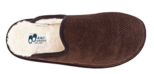 -. Feature : UTMOST COMFORT FOR YOUR FEET: The amazing Aski Gil slippers are made to provide a cozy, warm and irresistibly soft touch to your feet. Their open back, slip-on fury design makes these slippers a great choice for daily use, for any men who wants a super comfortable pair of house shoes. Choose among Black, Brown (Chestnut, Espresso and Brown), or Grey colors and enjoy their comfortable feel every single day! / SUPREME QUALITY: This pair of winter slippers is made of synthetic suede in the upper part, soft synthetic shearling fur in the inner part while the outsole is made of non-slid polyurethane for extra durability. The high quality of these cozy slippers makes them a perfect choice for both indoor and outdoor use! Note also that for these slippers only environmental friendly materials were used. / A PAIR OF SLIPPERS MADE TO LAST: Unlike regular cheaply made slippers that wear out within the first month of use, since 1986 Aski SlippersTM provide you with the #1 slippers patented with "GLUEFREE"® technology for extra durability and comfort. These winter slippers are thoroughly sewed, ensuring that you won't have to deal with cheaply glued, ripped bottoms again! / CUSHIONED SLIPPERS: For supreme comfort and coziness, the Aski Gil winter slippers have memory foam foothold that provides extra cushioning and shock absorption. Along with their non-slip design, these slippers are the best choice for your tired legs, for safe and comfortable use on your wooden or tiled floor. / MACHINE WASHABLE: For your convenience, you can clean your new fluffy slippers hassle free in the washing machine (up to 85°) while you can even pop them in the dryer. Thanks to their top quality and "GLUEFREE technology", you have nothing to worry about; they will come out just like new! After 30 years of experience, Aski SlippersTM know firsthand how to provide you with the best of the best slippers, to cover all your needs!