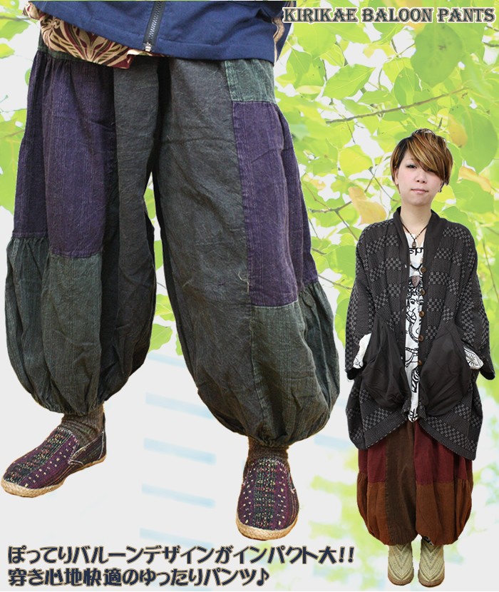 ぽってりバルーンデザインがインパクト大!ゆったりサイズで穿き心地は超快適♪ウエストは総ゴムなので楽チン♪カジュアルに着こなしてアウトドアなどにもぴったり★裾もゴムが入っているのでレングスのアレンジも自由自在♪もちろんメンズもOK!!長身さんから背の低い人まで色々着まわせてオールシーズン穿けるパンツです!カラーは2色(ネイビー系・ブラウン系)Sizeウエスト幅:約30cm~53cm(総ゴム)総丈:約90cm股下:約55cm○素材:コットン