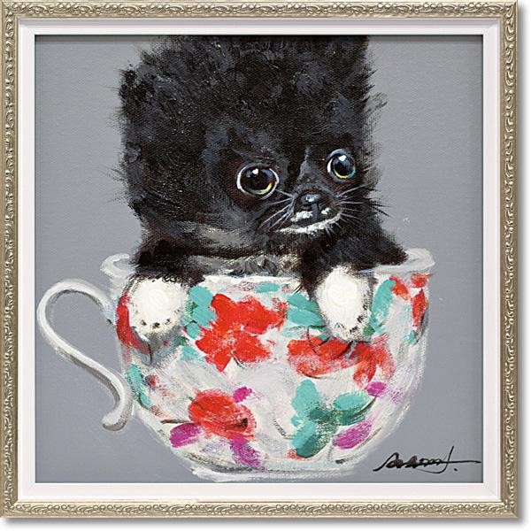 カラフルにハンドペイントされたキャンバスをリッチなフレームにセットしたモダンアートです。飾る場所を選ばない小型サイズ。
