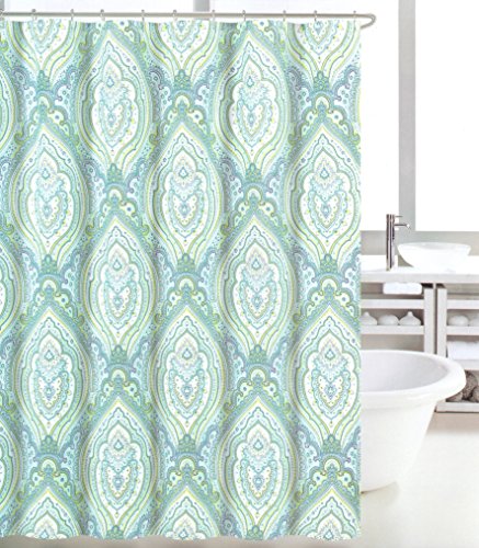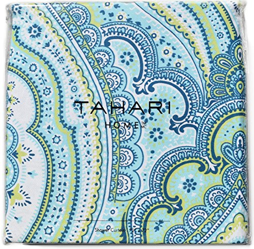 Tahari Home Cotton Shower Curtain Bohemian Mackenna Damask Medallions Gray Turquoise Grey 72-by-72-inch Boho Chic (Turquoise)
