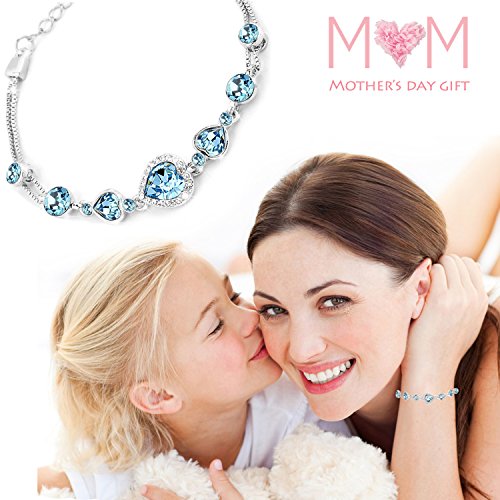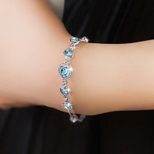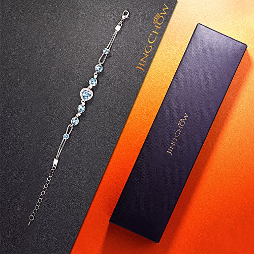 ♦Chain Length: 6.5 inches. Extension chain:2 inches.♦Metal Type: Eco-friendly White Gold Plated Alloy, nickel free and anti-allergic.♦Main Stone: SWAROVSKI ELEMENTS Crystal. Stone Color: Sky Blue/White. Stone Shape: Heart/Round Shape.♦All items are packed with Luxury jewelry gift box with "JINGCHOW" LOGO.