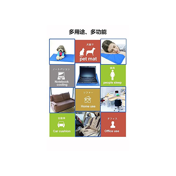 【다용도로 여러가지 사용법】:쿨 매트는 애완동물 개와 고양이용 만이 아니고, 인간의 여름의 발밑 매트,오피스 의자용 매트,차자리의 매트,노트 PC 매트로서도 대활약에서 옵니다.여러가지 경우에 간단하게 쓸만한 여름의 서늘 상품,개 고양이의 열사병,더위 대책 애완동물 용품입니다.