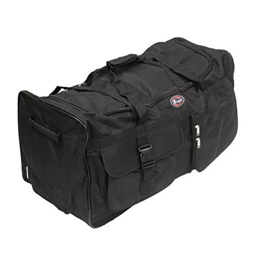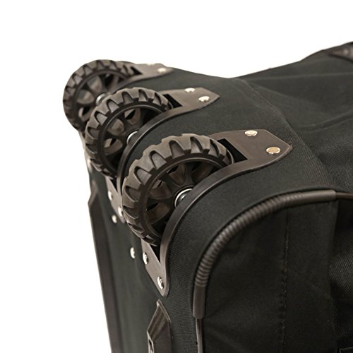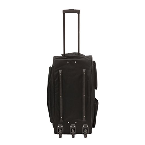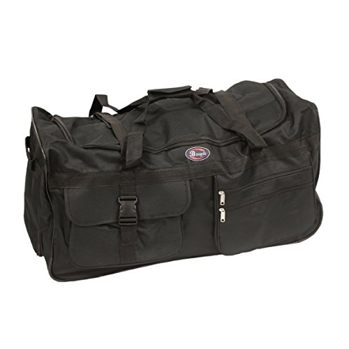 Product Description This beautiful 30" duffel bag may be carried, rolled, or even handled as a backpack. It has a solid hard panel bottom construction, protective corner guards, and a U-Top zippered opening system with adjustable security straps. With plenty of room for storage and a hideaway locking handle for easy wheeling transport, this is the duffel bag for you! 0