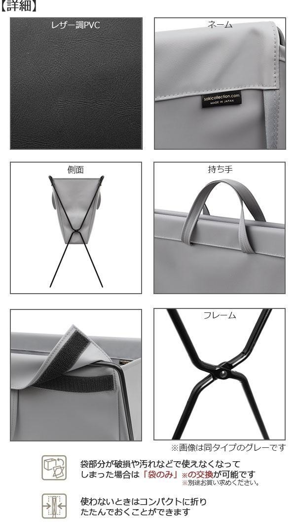 | レザー調PVCと黒フレームがお店の雰囲気にそっと馴染みます。両側に扱いやすい持ち手付きです。 |