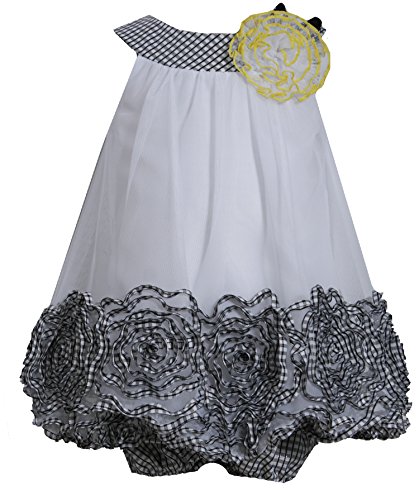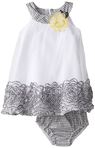 Two-piece set inlcudes bloomer and shift dress with patterned neckline and floral applique at chest and hemline Three-way elastic on bloomer Center back zipper on dress Brand : Bonnie Baby Item model num : R14608-PV EAN : 0887031629437 Product Dimensions(LxWxH) :