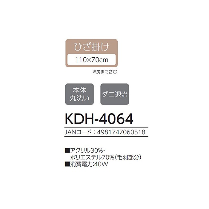 원본상품명:コイズミ 電ひざ掛け毛布 110×70cm KDH-4064