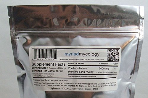 -. Binding : Health and Beauty -. Brand : Myriad Mycology -. Feature : Full Spectrum Mesima Mushroom powder is a great source of Beta Glucans (polysaccharides.) / Carefully cultivated in a sterile laboratory in USA, under rigorous quality control. Mushroom powder is already processed into a bio-available form with a high degree of water soluble constituents - no need to heat or boil. / Approximately a 1 month supply. Sturdy resealable mylar and plastic pouch. / Contains brown rice. The myceliated brown rice is not a filler. It is the growing medium, and we fully disclose all aspects of our herbs -. IsAdultProduct : 0 -. Label : Myriad Mycology -. Manufacturer : Myriad Mycology -. MPN : MM060 -. PackageQuantity : 1 -. PartNumber : MM060 -. ProductGroup : Health and Beauty -. ProductTypeName : HEALTH_PERSONAL_CARE -. Publisher : Myriad Mycology -. Studio : Myriad Mycology -. Title : Mesima Mushroom (Sang Huang) Powder 1 lb