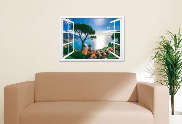 窓枠がデザインされている絵柄で開放感のあるお部屋を演出します。パネル(別売)との一体感で、素敵なインテリアに。