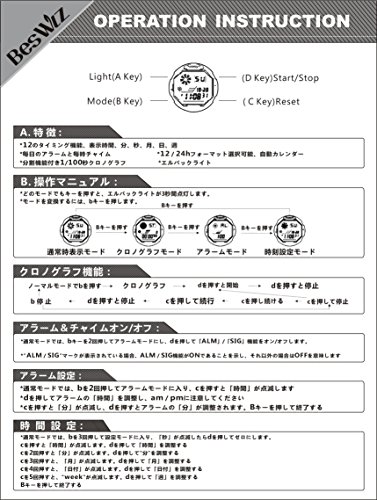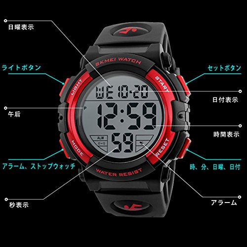 その他 機能:耐水性、バックライト、カレンダー、日付と週、5つの独立したアラーム、12/24時間形式、LEDディスプレイ、耐衝撃性、防塵性、ストップウォッチ
