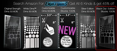 Everyone loves LightDims Original Strength but some people need something stronger. Black Out Edition LightDims block 100% of light. Each package comes with over a hundred dims.This order includes the retail store packaging. LightDims themselves are dark and colorless.ÊFeature