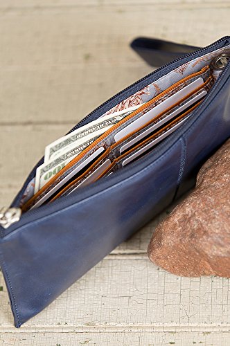 Beautifully mixing style and function, this Vintage Vida Clutch Wallet by Hobo transitions perfectly from day to night! This wallet is made from top-grain genuine leather that has been tumbled for a unique, broken-in vintage look. The spacious interior features 6 credit card slots, 1 bill pocket, and a large slip pocket that's ideal for holding your cell phone. A zip closure keeps all your valuables secure while a wrist strap makes this clutch the perfect wallet for those long shopping days or nights out. Measures 10" x 5" x 0.5".Feature