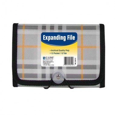 -. Title : C-line Expanding File, Plaid, Coupon, 13 pockets, 1.5" Exp., 1/EA