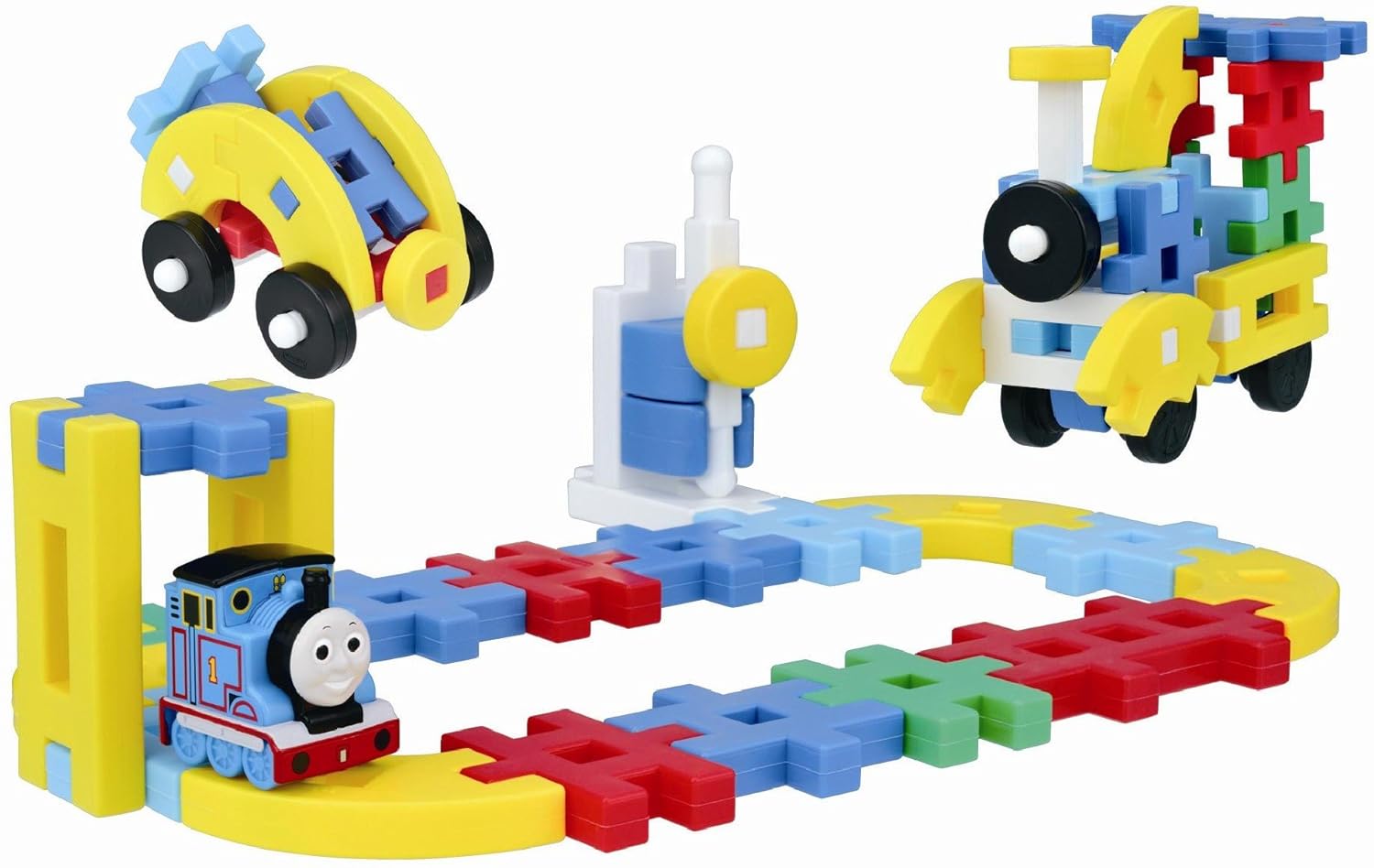 対象年齢:2歳から(C)2012 Gullane (Thomas) Limitedニューブロックのトーマスがかわいいデザインのボトルケースで登場。ボトルにブロックを収納できるのでおかたずけの習慣も身に付く。中身はトーマスのマスコットが入っていて、車輪やタイヤのパーツも入っているので、機関車や自動車など組み替えていろいろな乗物を作って遊べる。