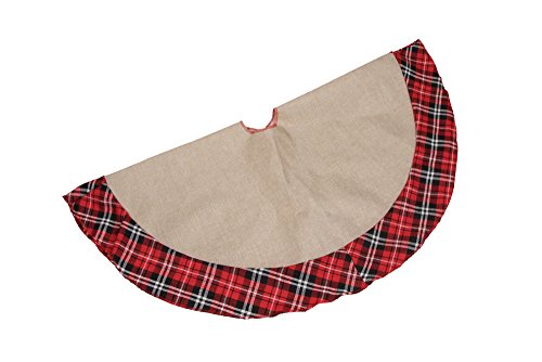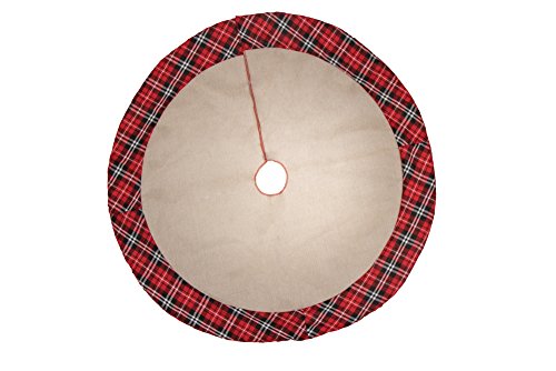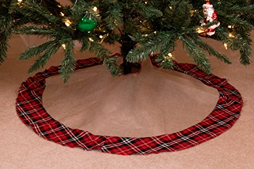 Burlap and Plaid Christmas Tree Skirt by Clever Creations | Burlap with Traditional Plaid Border | Traditional Theme Festive Holiday Design |Helps Contain Needle and Sap Mess on Floor | 36” Diameter