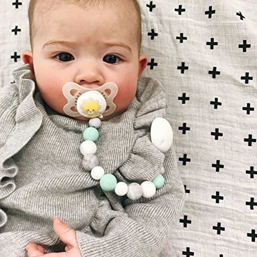 -. Feature : REVOLUTIONARY! When your baby still needs a pacifier, and is strling through teething, you need a smart, easy-to-use solution to help them transition with less stress while making it easier on you. That's why we developed the innovative 2-in-1 DK Leigh Silicone Pacifier Clip and Teether Our Universal pacifier leash is compatible with most major pacifier and binky brands including Nuk, Soothie and more fore versatile baby support. / UNIQUE BABY GIFT! If you've been looking for the perfect modern unisex baby shower or hospital gift, then your search is over! That's because we have purposely designed our pacifier leash using gender neutral colored silicone beads which means the clip is a perfect gift for both baby girls or boys! The soft baby safe, non-toxic beads are gentle on teeth and gums and help provide motor and sensory development during teething phases. / BONUS BANDANA BIB! Every 2-in-1 Pacifier clip and teether also comes with a soft, super-absorbent baby bib to help keep clothes clean and dry and skin safe from irritation. / STRONG AND DURABLE! The problem with other pacifier clips is that after a few uses the fabric band gets discolored & stinky or the flimsy plastic clip breaks. Our product solves that problem! Why? That's because our product is made with food grade silicone beads that are stain and odor resistant and BPA Free. The strong, rust resistance metal clip protected by a silicone cover easily attaches to clothes, blankets, strollers, car seats, toys and other baby travel essentials / 100% GUARANTEED! Does this come with a money back guarantee? YES! Your purchase comes with a full 90 day no-risk, no-nonsense 100% Money Back Guarantee. Either your thrilled, or we don't want your money! See why Amazon customers rate our Pacifier Clip Teether 5-stars!