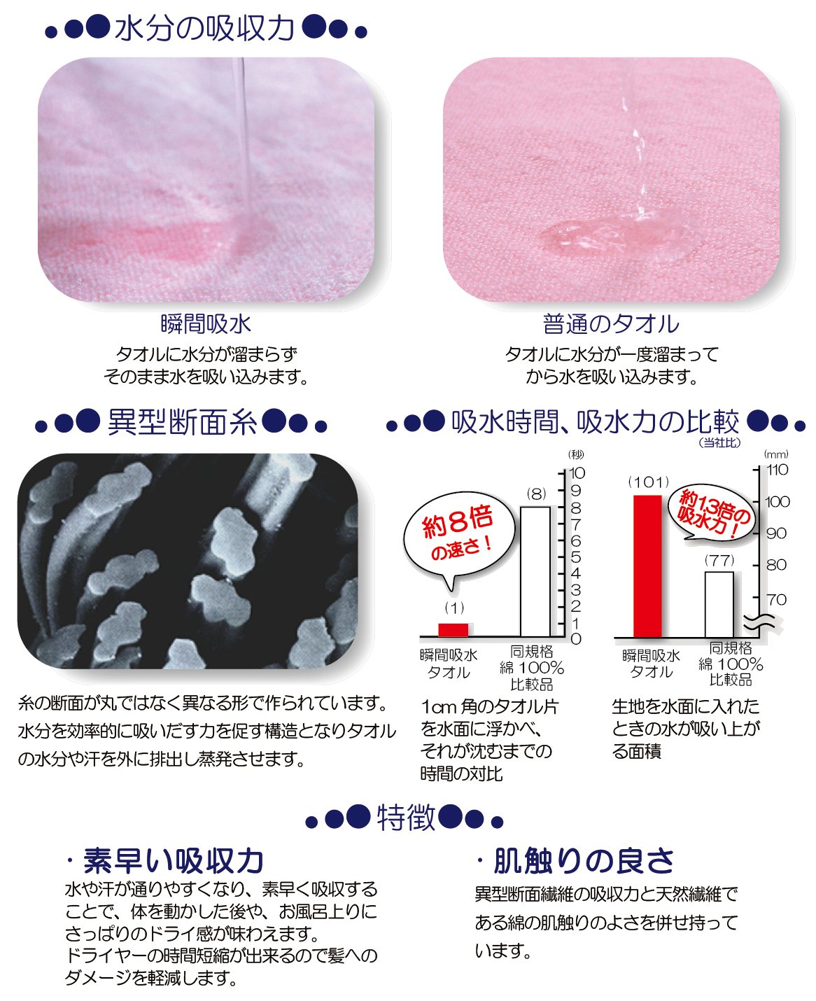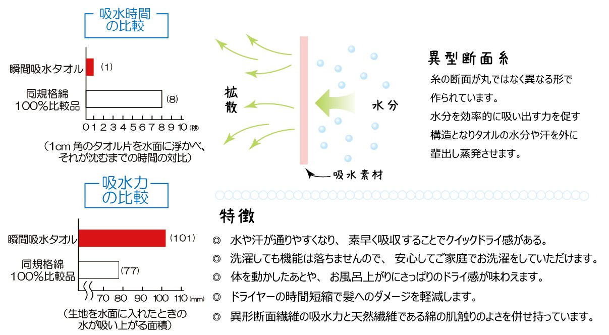 "Instantaneous water absorption" towel to absorb plenty of water and sweat quickly.