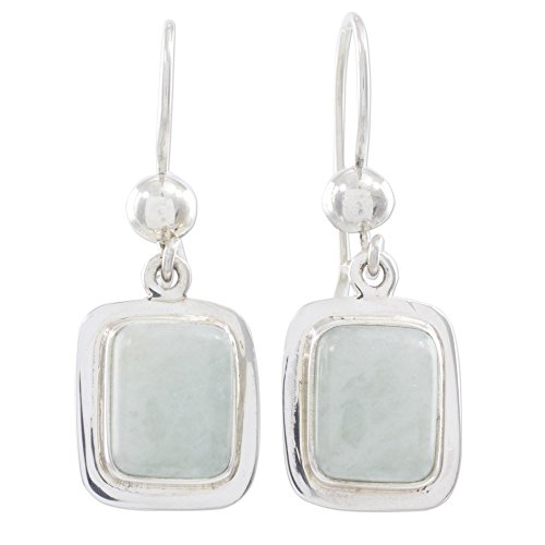 About this item: Showcased in dangle earrings with a minimalist design, pale green Guatemalan jade flaunts a minty color. Zandra Lorena Sajbin crafts the magnificent pair of earrings from polished .925 sterling silver. The earrings swing from sterling silver kidney earwires. Length: 1.4 inches including the hook.