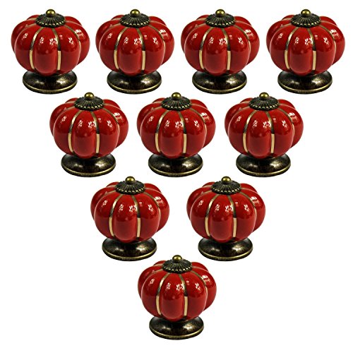 abcGoodefg Red Ceramic Pumpkin Knobs for Dresser Drawer Kitchen Cabinet Door Cupboard Pulls Handles (10PCS, Red)