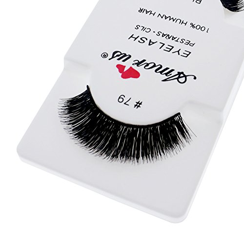 Amorus 12 Pairs Multipack #79 False Eyelashes Dozen Set 100% Natural Hair Black Handmade Comfortable Reusable Fake Lashes Pack