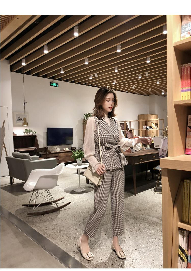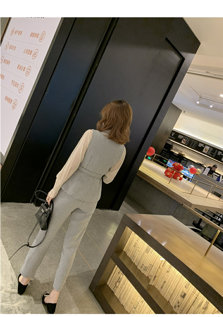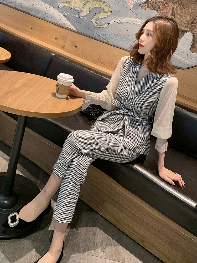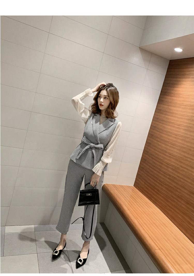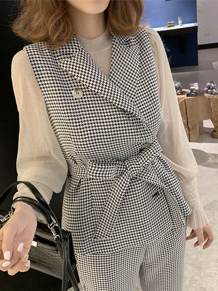 パンツスーツ セットアップ レディース セット ベスト パンツ スーツ 長袖 千鳥格子 キレイめ