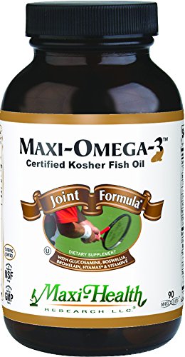 -. Binding : Health and Beauty -. Brand : Maxi-Health -. EAN : 0753406218097 -. Feature : ENHANCES the production of synovial fluid in joint cavities, and supports bone and cartilage nutrition. / NO FISHY AFTERTASTE is achieved by using an Enteric Coating to bypass the Stomach and dissolve in the small intestines for best results. RIGOROUSLY TESTED By a Third Party to Provide Guaranteed Potency and Purity with each Gel Tablet. / GREAT POTENT Source of EPA (178.19mg) and DHA (119.48mg) to help promote the body's natural healing process. / GLUTEN FREE, No Artificial Flavors, Colorings or Preservatives. Kosher Certified / SAFE: Made in the USA, Manufactured in a NSF & FDA registered and GMP Certified Facility : MaxiHealth Was Established in 1974 -. Label : Maxi -. Manufacturer : Maxi -. NumberOfItems : 24 -. PackageQuantity : 24 -. ProductGroup : Health and Beauty -. ProductTypeName : HEALTH_PERSONAL_CARE -. Publisher : Maxi -. ReleaseDate : 2014-07-15 -. Studio : Maxi -. Title : Maxi Health Omega-3 Fatty Acids - Fish Oil - Joint Formula - 90 Capsules - Kosher (Pack of 24) -. UPC : 753406218097