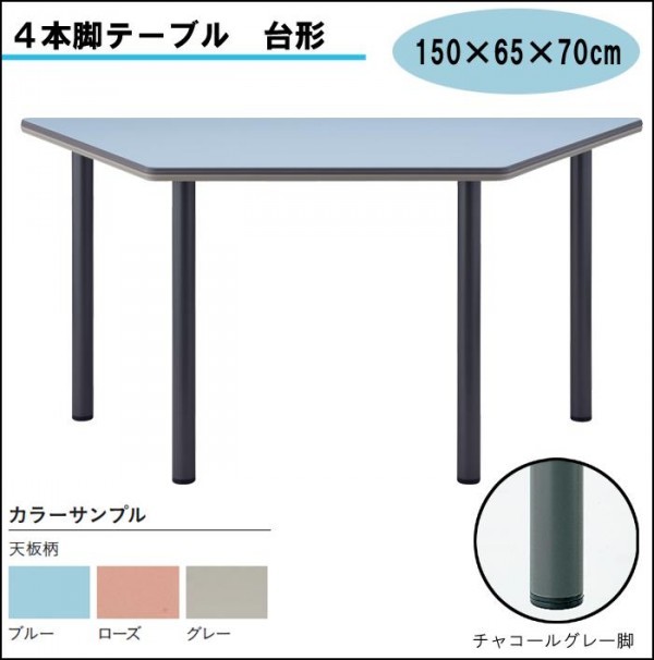 | 素材・材質 | 天板:メラミン化粧板、フラッシュ構造、天厚t30 エッジ:オレフィン系2色、ソフトエッジ巻 脚:塗装脚φ50.8丸パイプ・チャコールグレー塗装 |